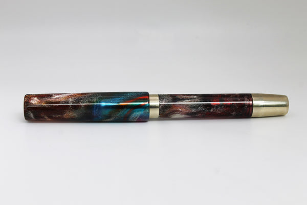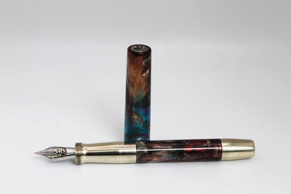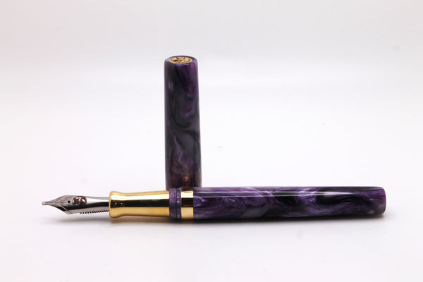 This model comes with a JoWo #6 nib and Schmidt K5 converter. It is also compatible with international size cartridges, and can be used as an eyedropper pen by adding silicone grease to the section threads.
