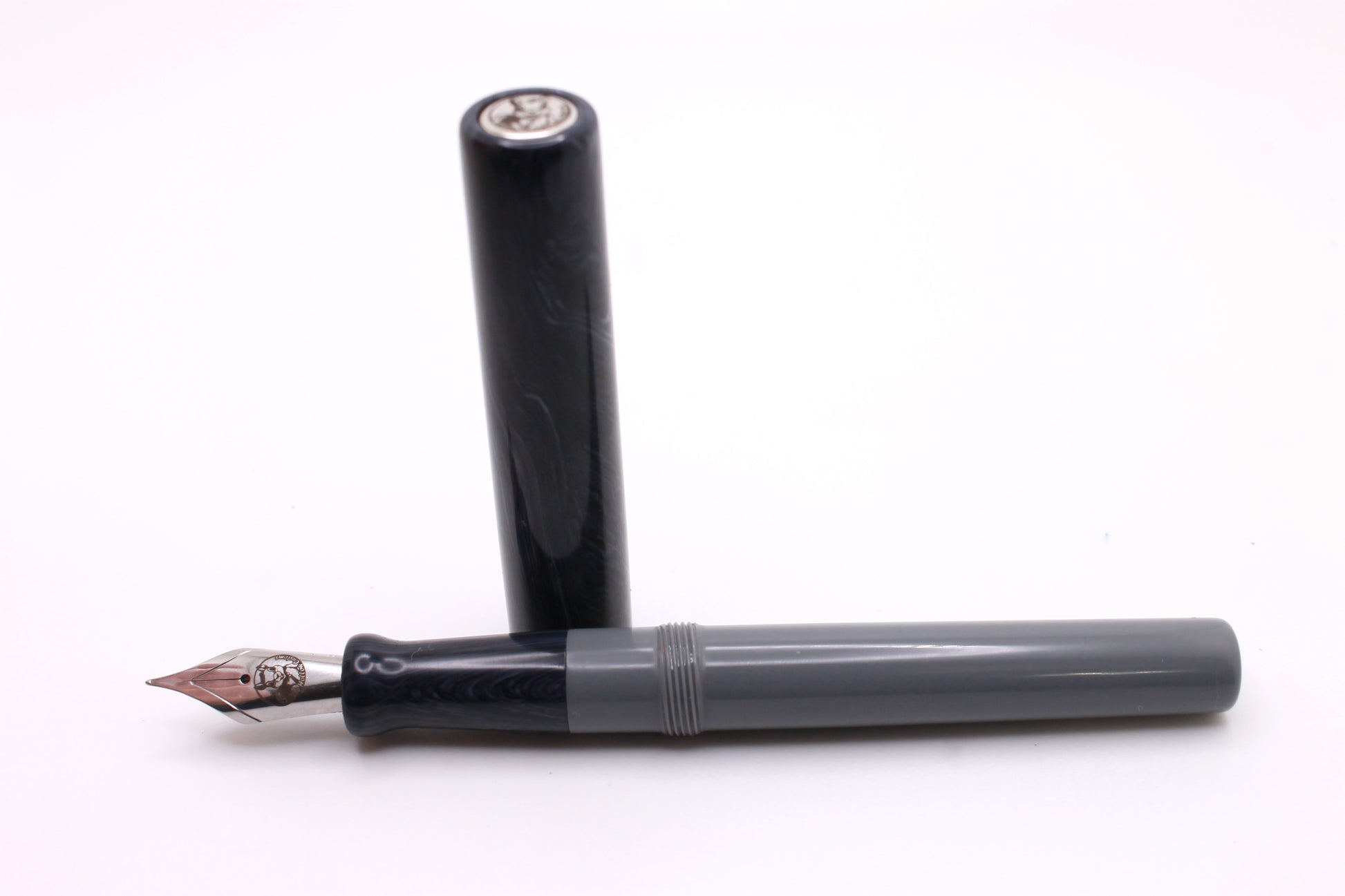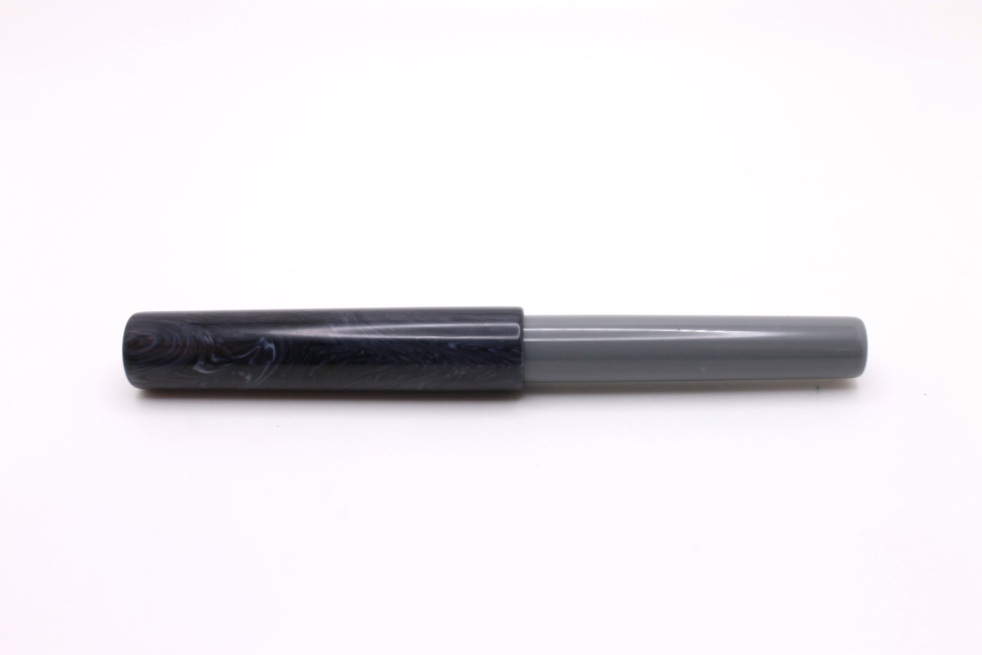 Custom fountain pen in the Little Miss model made from Black Gem Juma and Grey resin.
