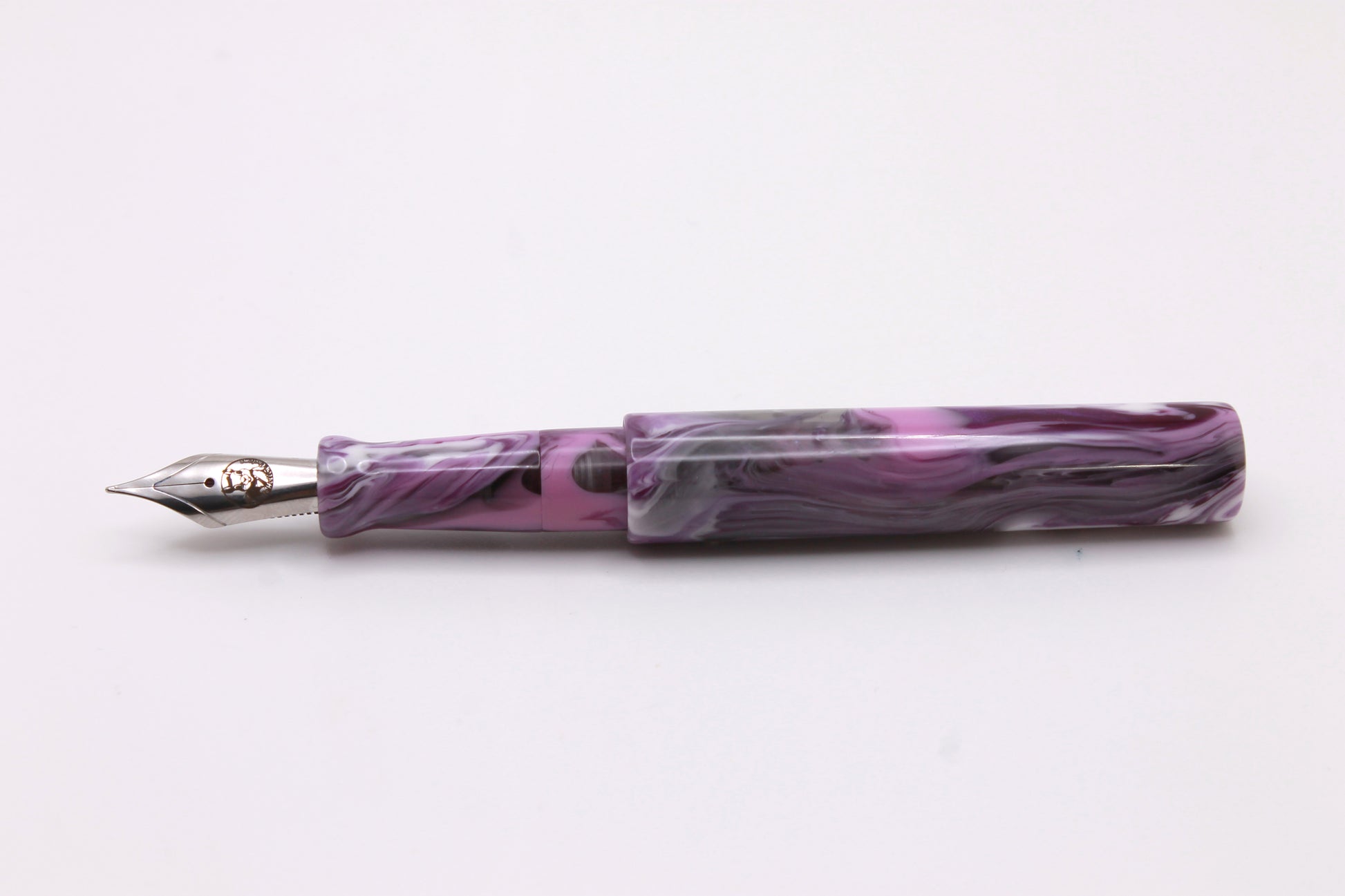 The Little Miss is a posting pen designed to allow the cap to post by threading onto the same threads used to cap it, meaning that no threads will be exposed while posted or capped!
