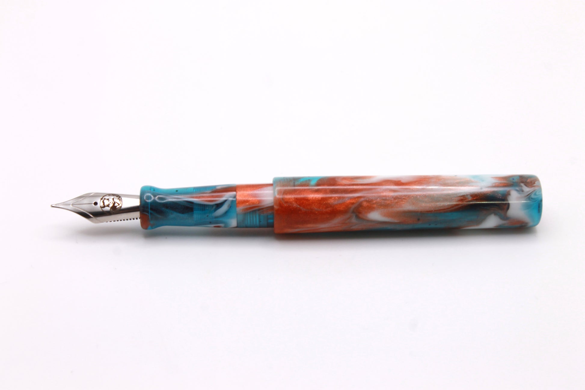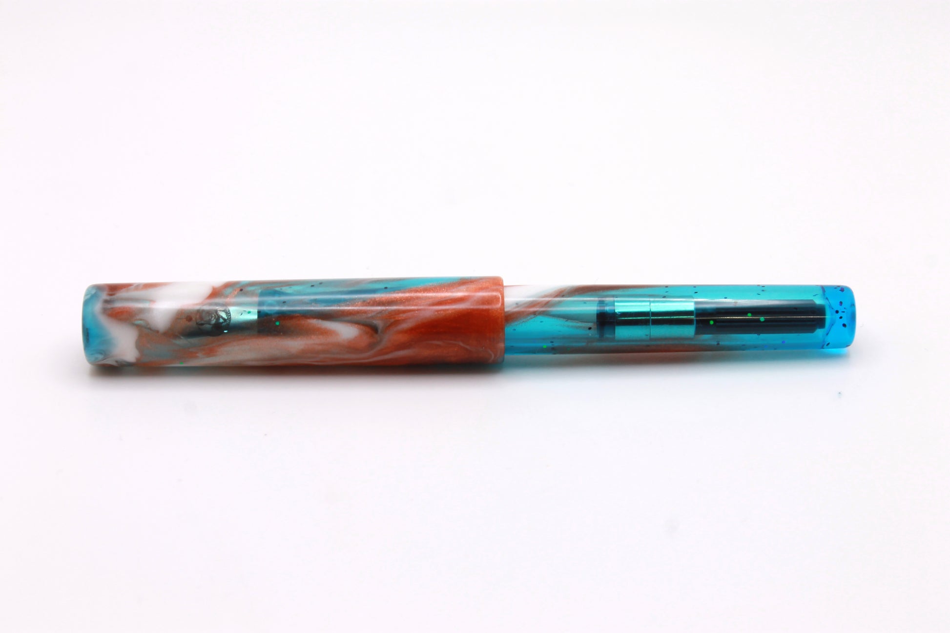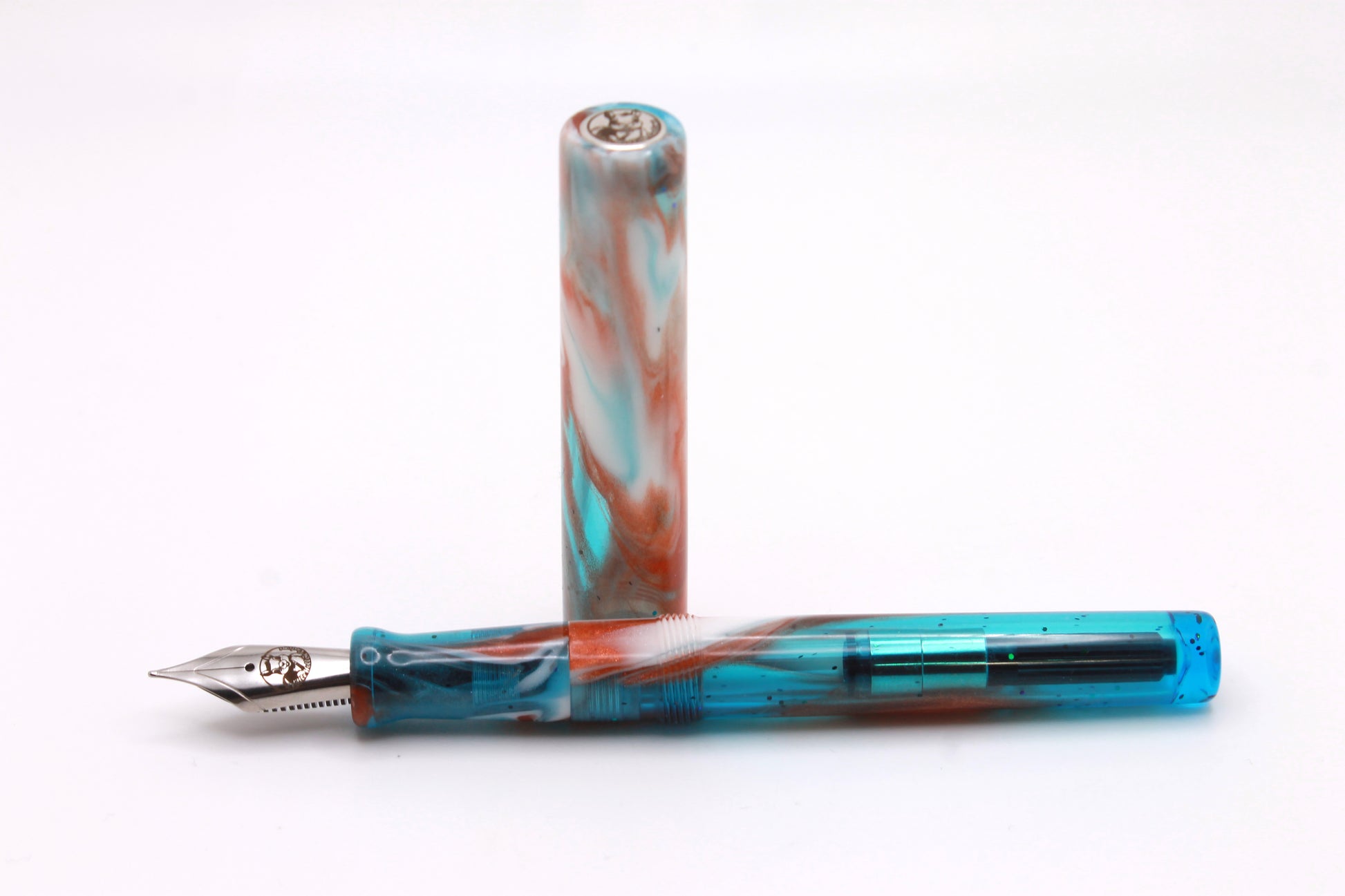 Custom fountain pen in the Little Miss model made from Coral Reef resin by TS Blanks.