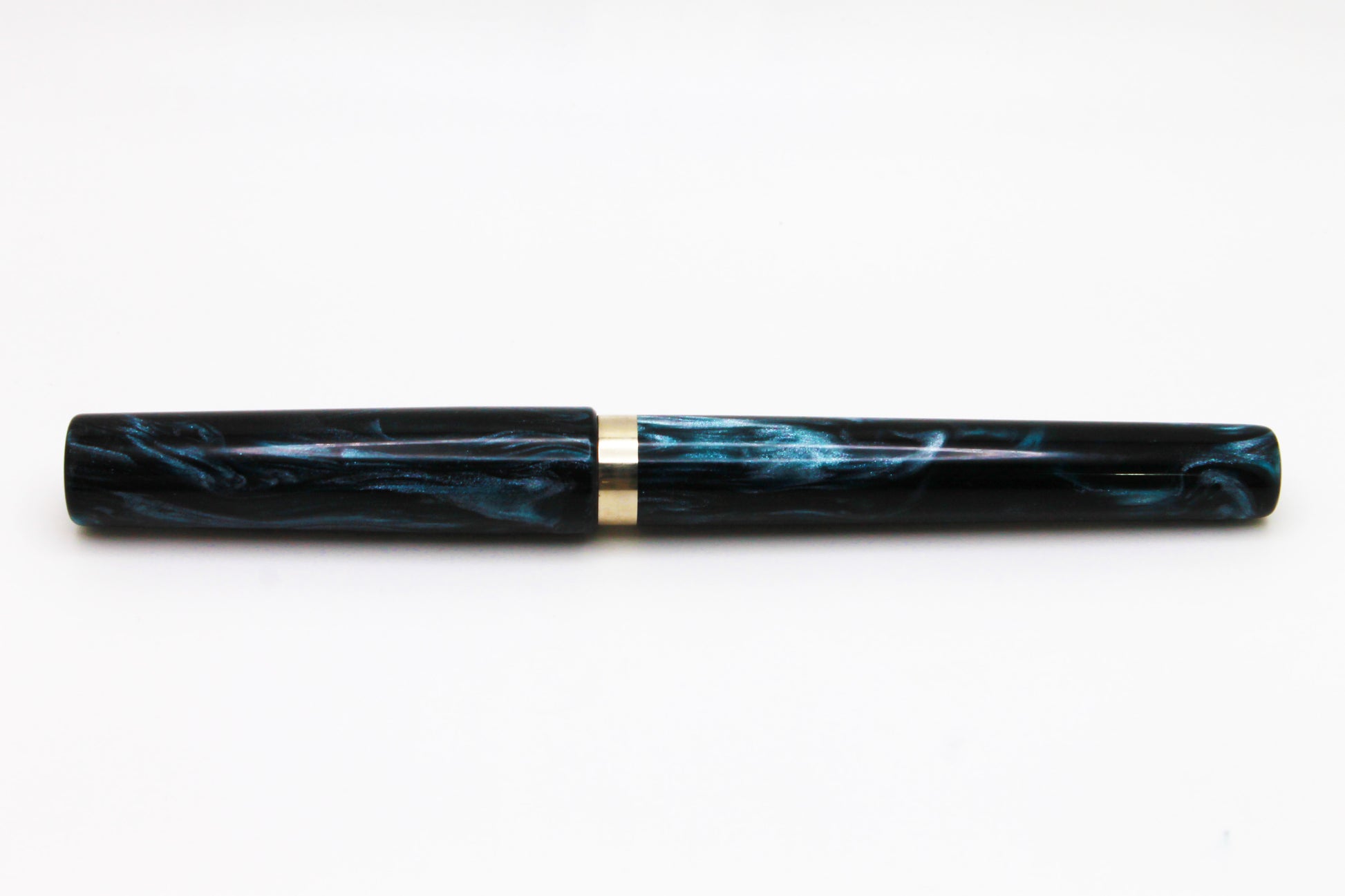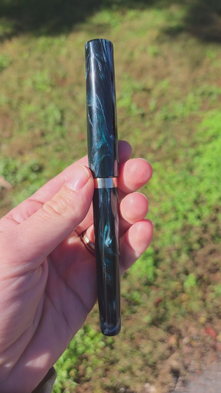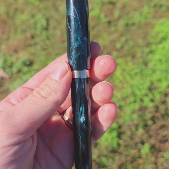 Custom fountain pen in the Mistress model (non-posting) made from Arctic Freeze resin by Brooks Blanks and Nickel Silver.