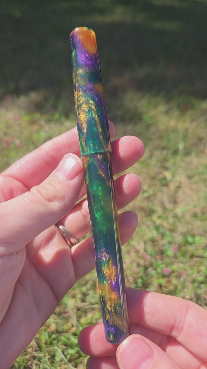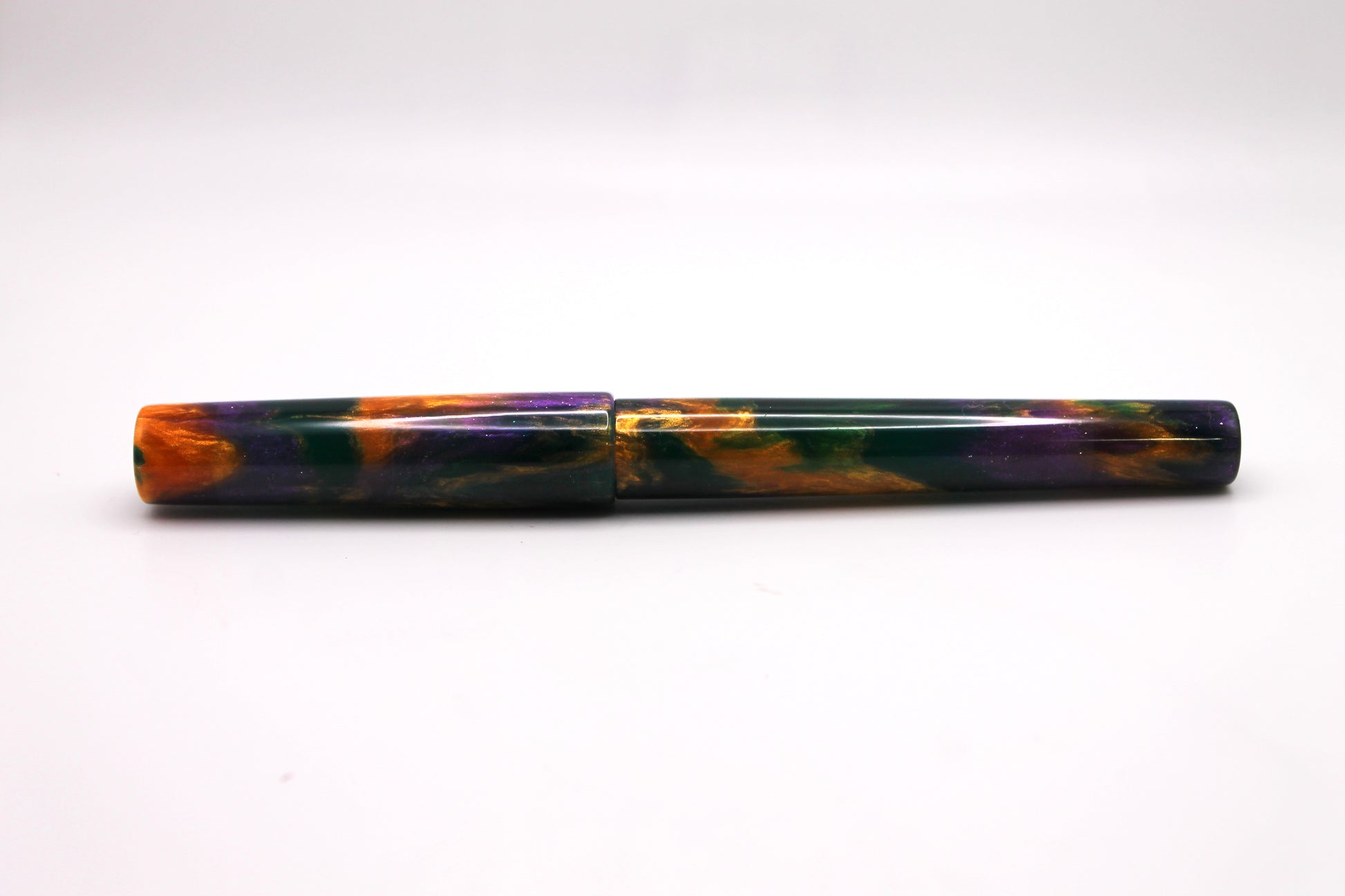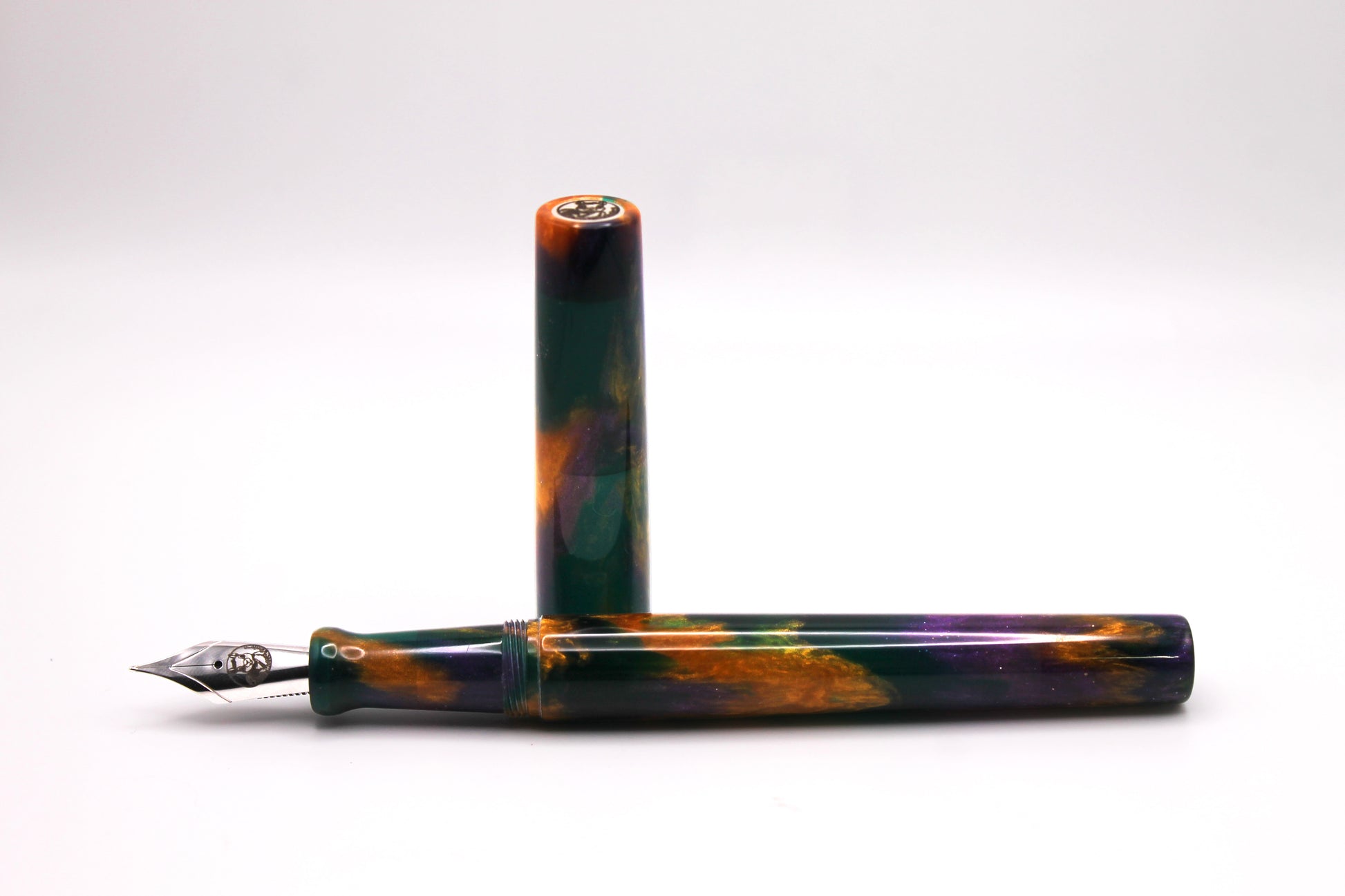 Custom fountain pen in the Mistress model (non-posting) made from our in-house Leprechaun King resin.