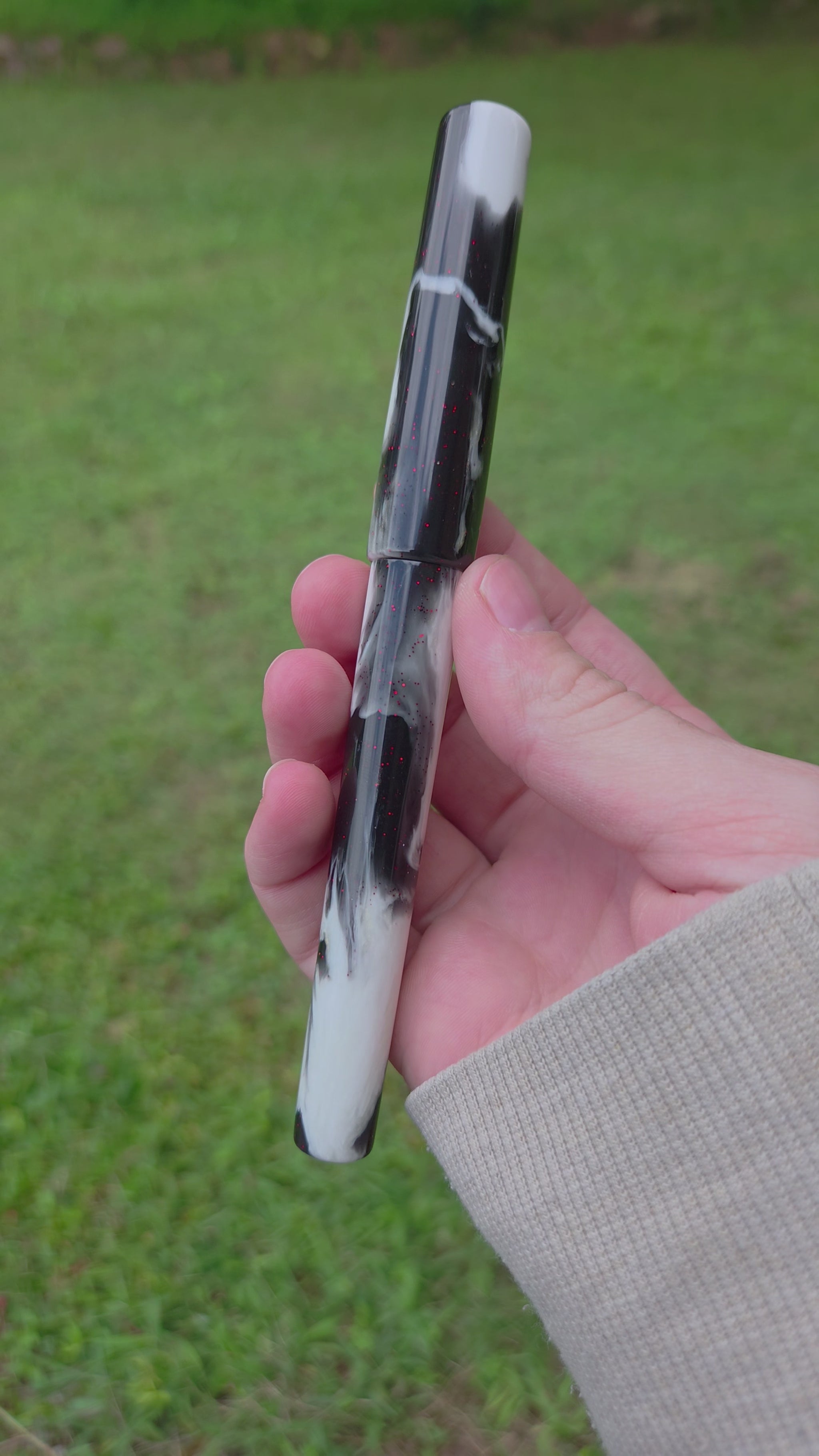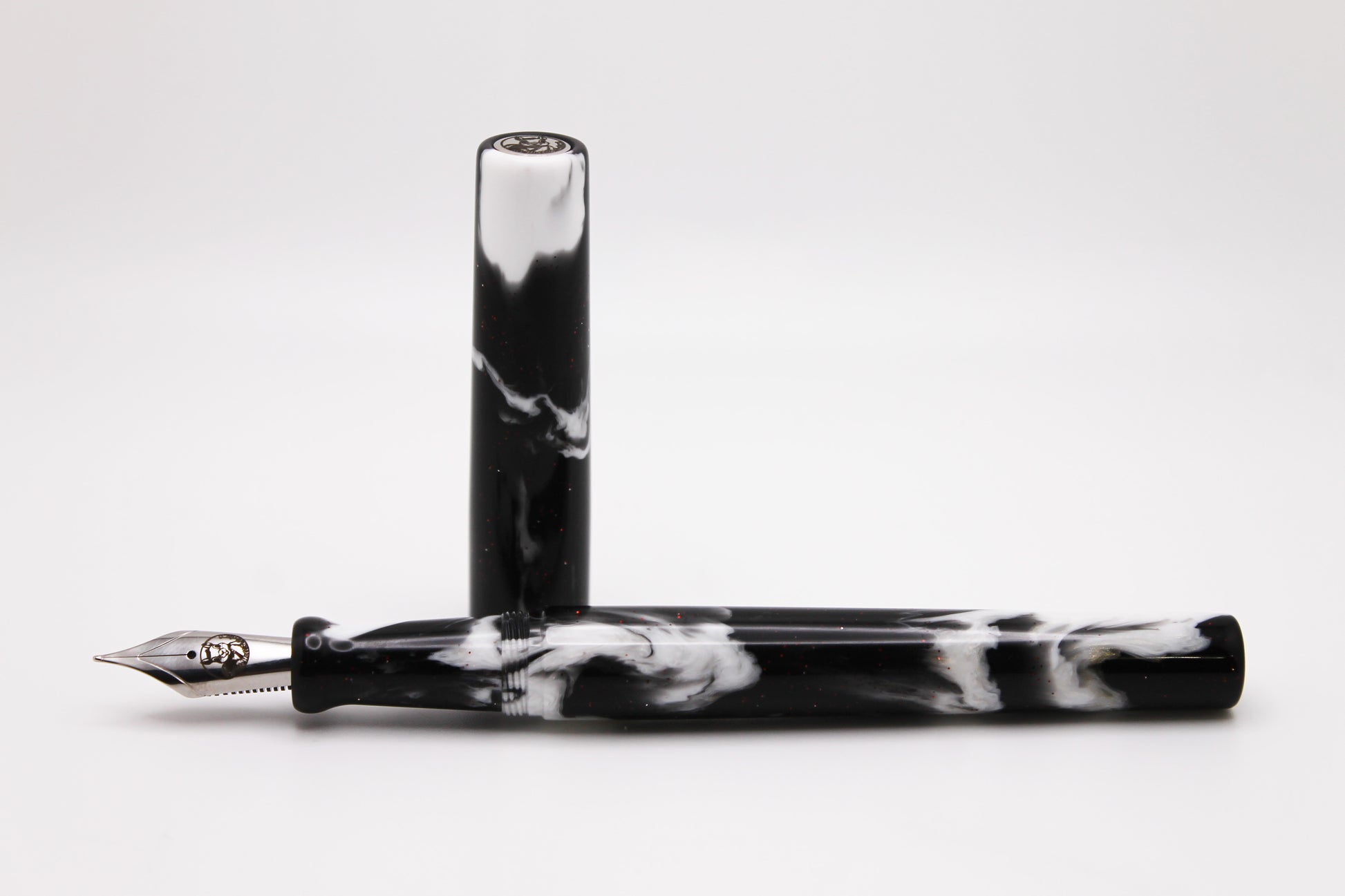 Custom fountain pen in the Mistress model (non-posting) made from a custom, in-house resin pour.