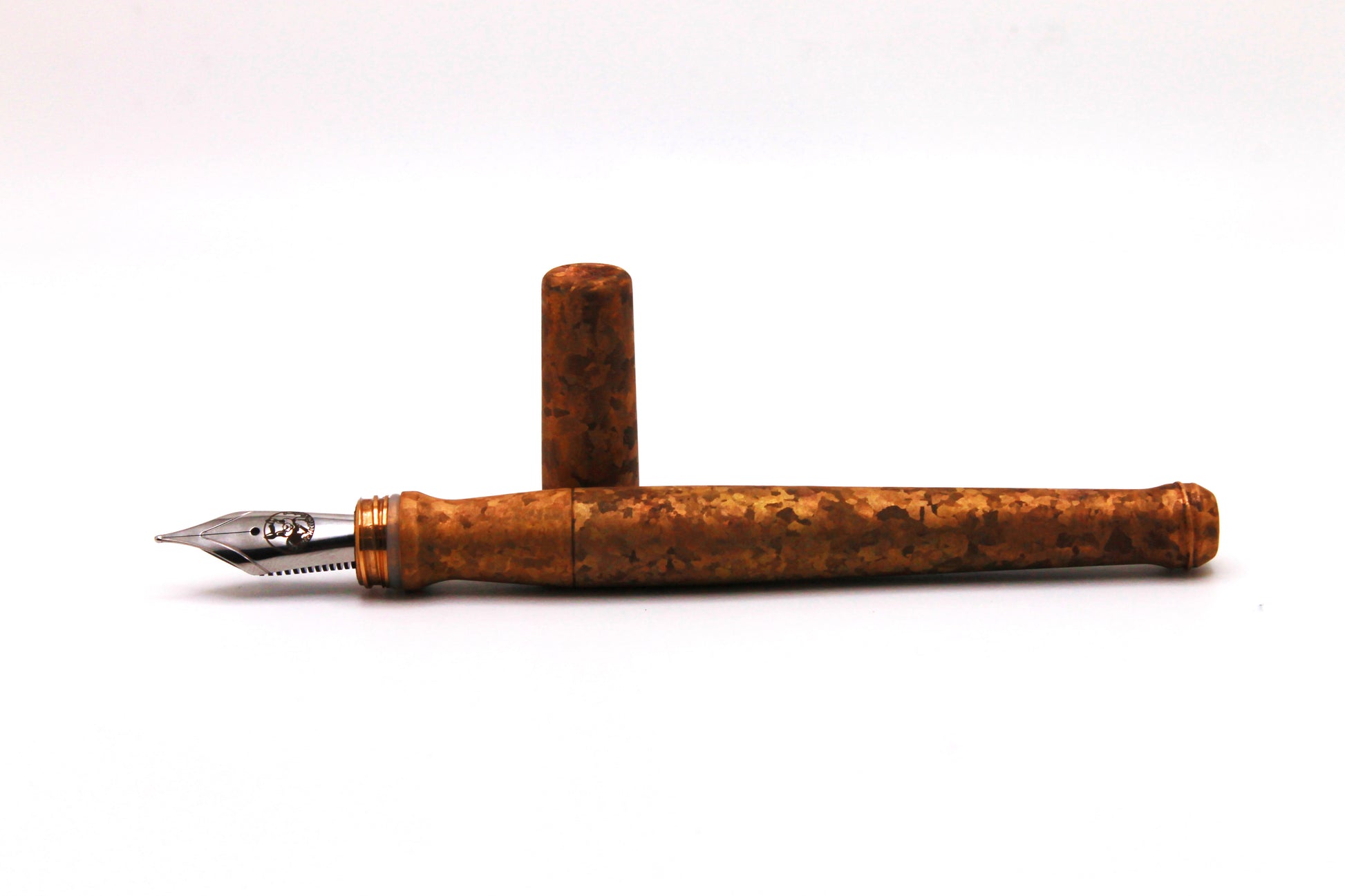 Hand crafted fountain pen in the Reduction model made from Gem Bronze.