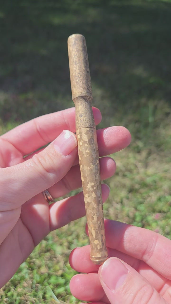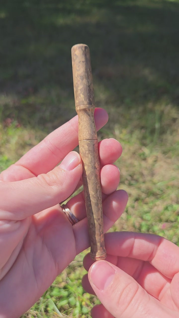 Gem Bronze is a custom bronze alloy created and patented by Mike's Metalworking. This material is currently only available from one maker worldwide, and we are the first to use it for making pens.